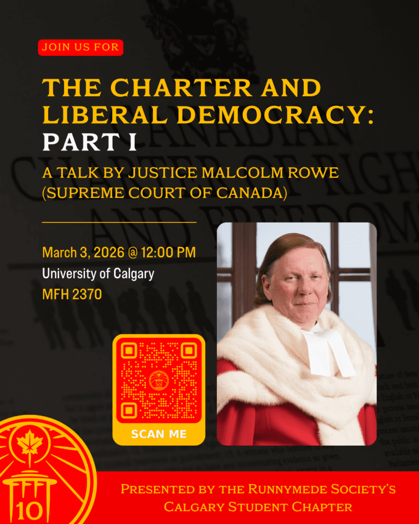 In this episode of Runnymede Radio, we share a live recording from a student chapter event hosted by the Runnymede Society’s University of Calgary Chapter, featuring Professor Geoff Sigalet (UBCO). Professor Sigalet’s lecture makes the political and legal case against substantive judicial review of laws enacted under section 33 of the Charter. Drawing on recent constitutional litigation, academic debate, and institutional and political analysis, he explains why provinces have been more willing to invoke the notwithstanding clause since 2018, critiques