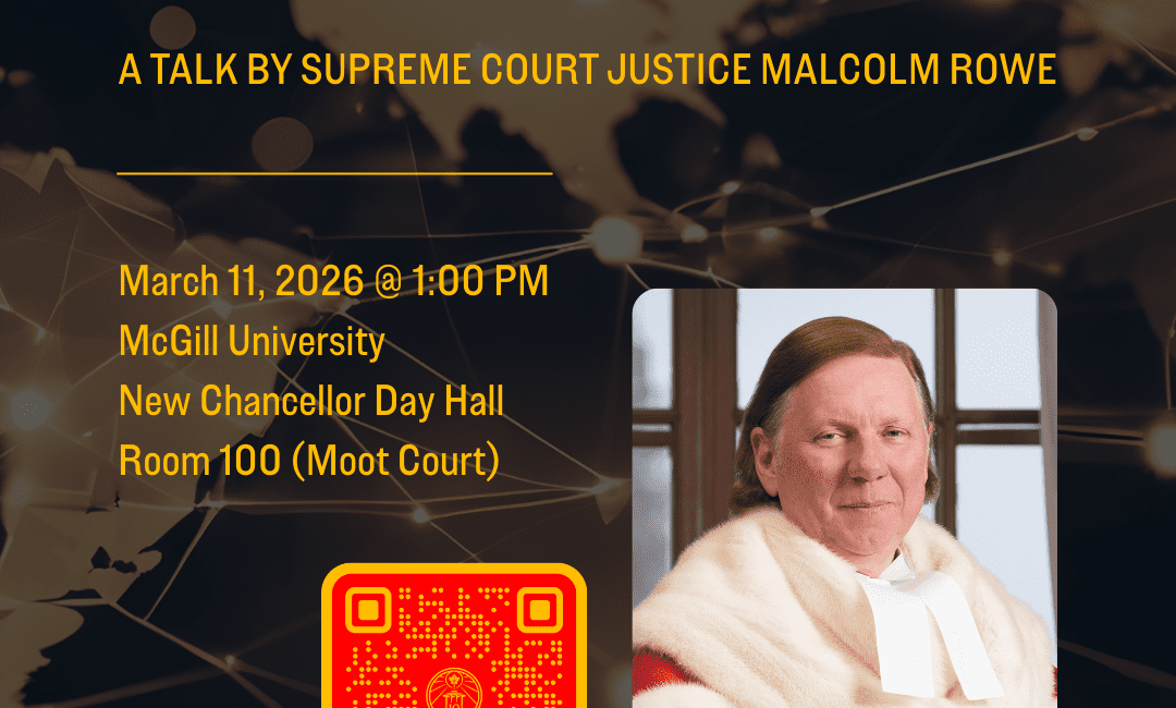 Please join the Runnymede Society’s McGill University Chapter for a lecture with Justice Malcolm Rowe of the Supreme Court of Canada, on Wednesday, March 11th. In this lecture, Justice Rowe will examine the nature of international law as the acceptance by states of certain norms of behaviour, whether through treaty...