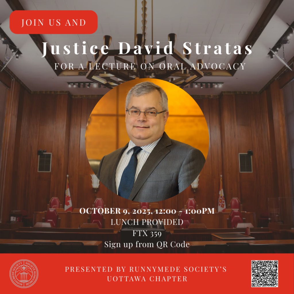 Please join the Runnymede Society’s Ottawa Student Chapter for a talk on oral advocacy by Justice David Stratas of the Federal Court of Appeal on [...]