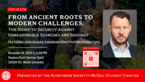 Please join the Runnymede Society’s McGill Chapter for a captivating lecture on the history and contemporary importance of the right to security against unreasonable searches [...]