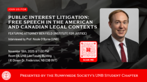 Please join the Runnymede Society’s UNB Chapter for a thoughtful conversation on public interest litigation and free speech in the American and Canadian legal contexts [...]